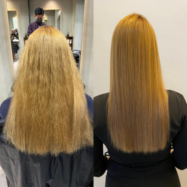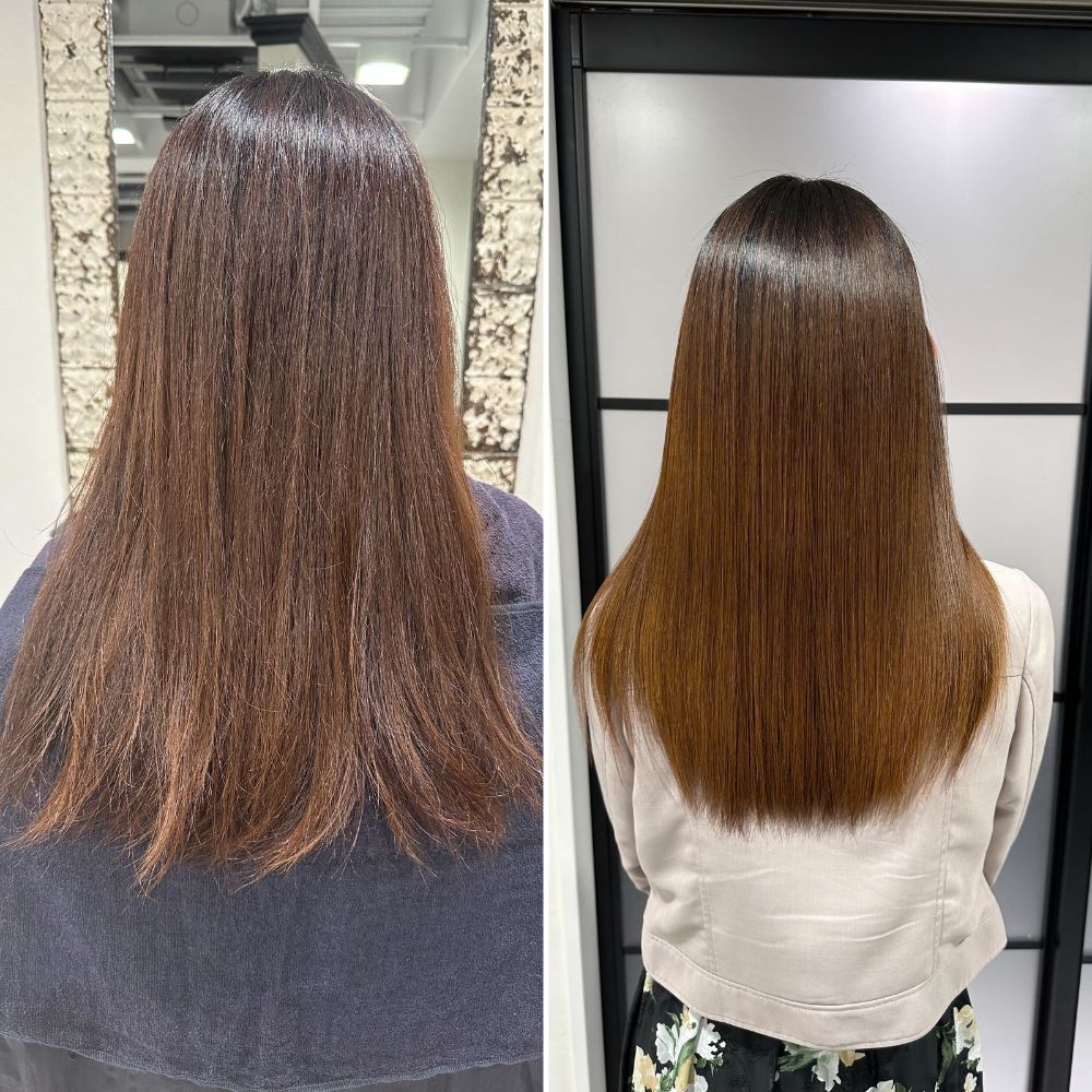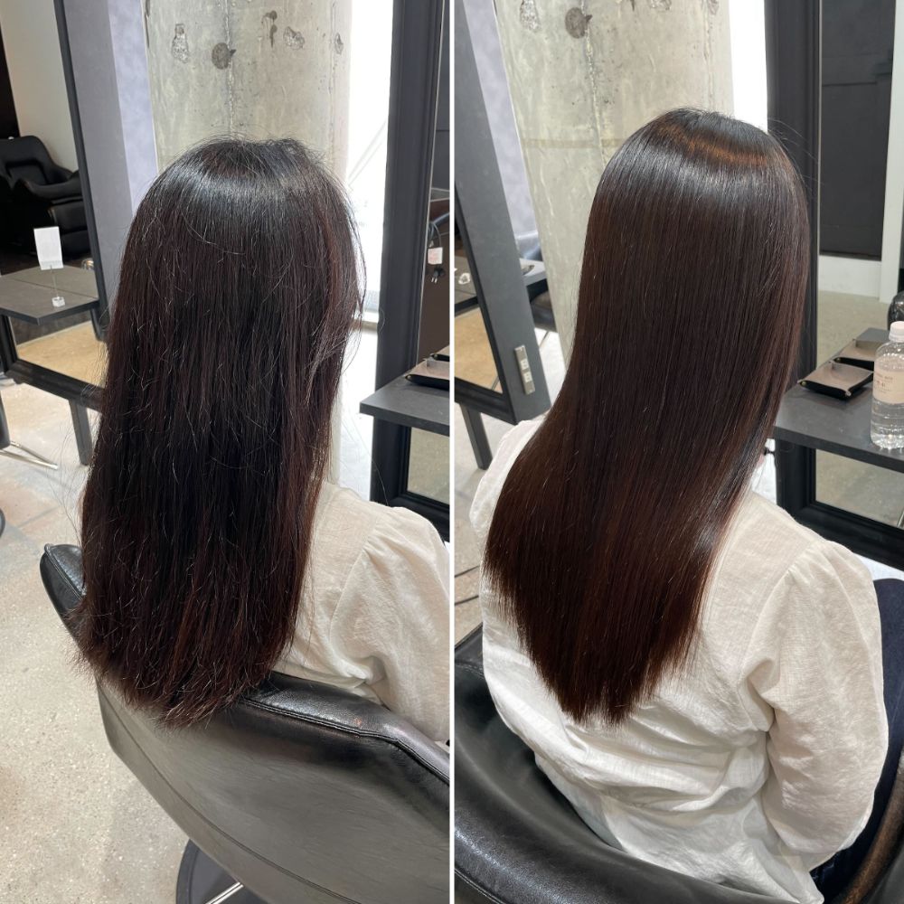 そんなお客様でも右のように艶と柔さもあるストレートヘアに大変身♪