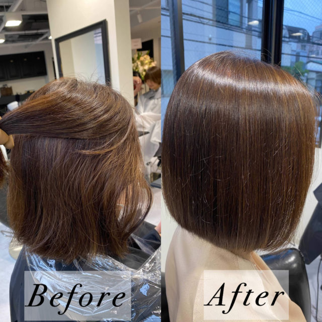 そんなお客様でも右のように艶と柔さもあるストレートヘアに大変身♪