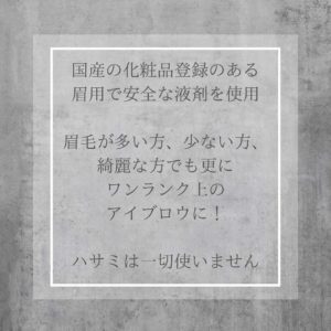 眉毛の毛流れの矯正をするアイブロウメニューです!国産の化粧品登録のある眉用で安全な液剤を使用眉毛が多い方、少ない方、綺麗な方でも更にワンランク上のアイブロウに!ハサミは一切使いません。