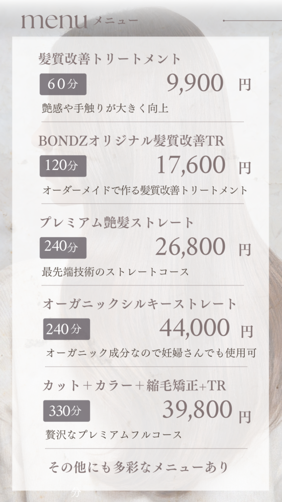 | 定休日 | BONDZSALON BONDZSALON BONDZSALON BONDZSALON BONDZSALON BONDZSALON | ||